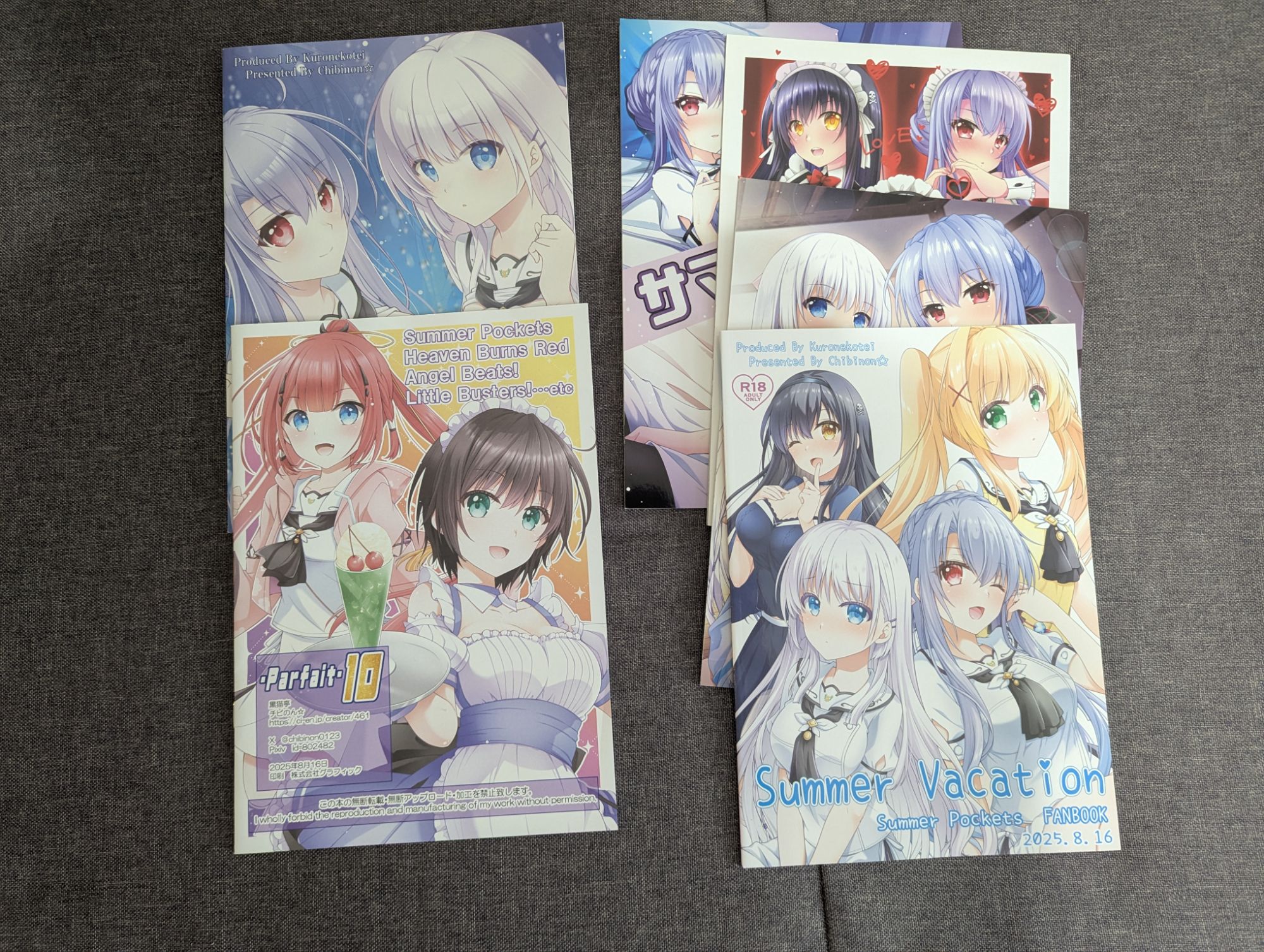 ここで謝罪なのですが、戦利品の写真は撮ったものの帰省先に持ってきていない+私の記憶力のなさと無鉄砲さから、一部購入品のサークル名を把握できていません。分かり次第追記しますが予めご了承ください。また、敬称は略しています。